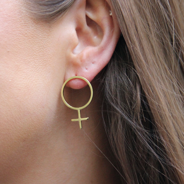 Ett örhänge med attityd! Våra populära örhängen med stort Venustecken på stift, gjort av äkta 925 sterling silver som guldpläterats med 18 k, gult sydeuropeiskt guld. Finns i två storlekar.