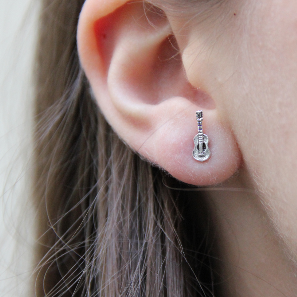 Ett par små örhängen i form av en gitarr. Perfekt för den musikaliska personen! Dessa mäter 10x4mm.