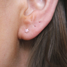 Söt liten stjärnformad zirkon endast 3 mm stor. Supergullig att ha helt ensam i örat eller tillsammans med andra örhänge. Sitter på stift som knäpps med fjäril på baksidan av örat.