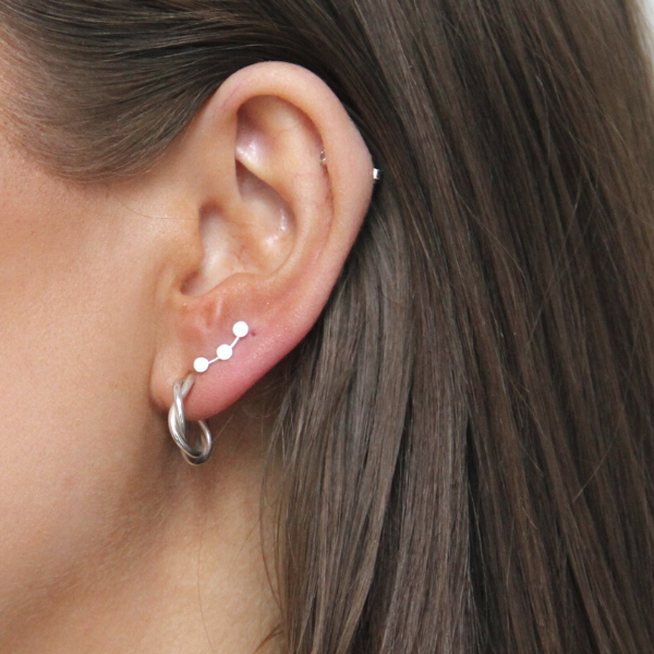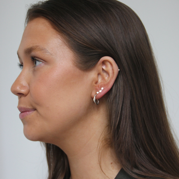 Ett otroligt sött örhänge med tre prickar bredvid varandra i en böjd linje. Supersnyggt att sätta i sitt andra hål som gör att det ser ut som du har massor av hål i öronen!