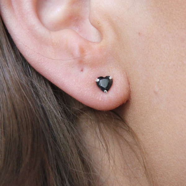 SILVERÖRHÄNGE ZIRKONIA HJÄRTA SVART 5MM
