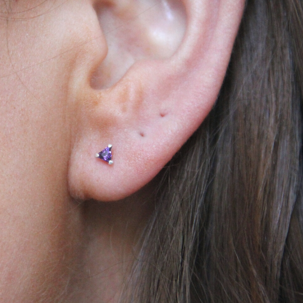 Söt liten trekantig zirkon endast 3 mm stor. Supergullig att ha helt ensam i örat eller tillsammans med andra örhänge.