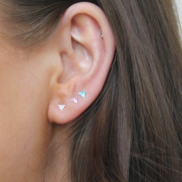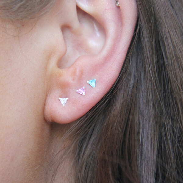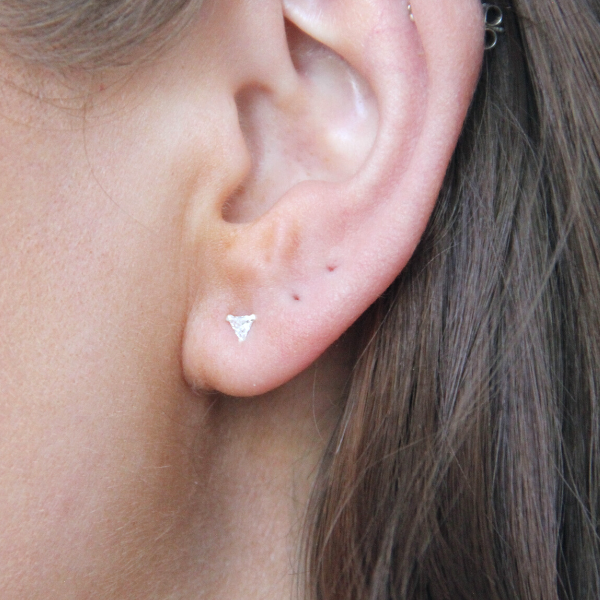 Söt liten trekantig zirkon endast 3 mm stor. Supergullig att ha helt ensam i örat eller tillsammans med andra örhänge.