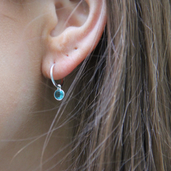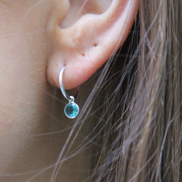 Supersöt liten creol med en hängande blå cubic zirkonia-sten. Stenen går att ta bort så man kan använda endast creolen.