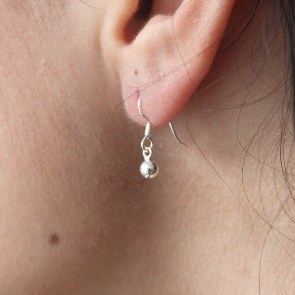 Ett par örhängen på krok med en hängande silverkula. Kulan är 4 mm i diameter.