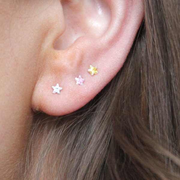 SILVERÖRHÄNGE ROSA STJÄRNFORMAD ZIRKON 3 MM