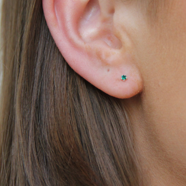 Ett par små söta cubiz zirkoner som mäter ca 2 mm. Färgen på färgkartan kallas "Emerald" och är en mörkare grön.