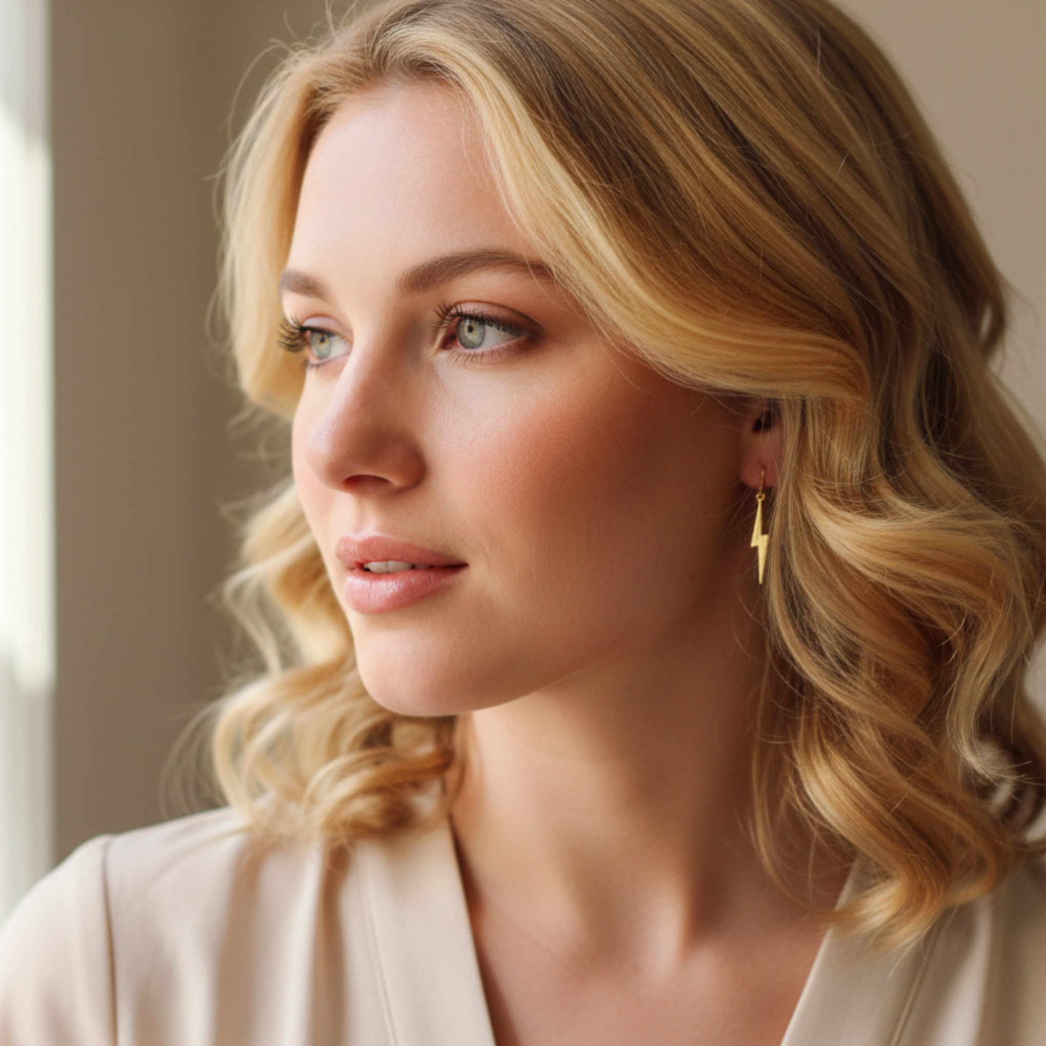 Fina, guldpläterade örhängen i form av en blixt! Denna blixten mäter 4mm x23mm.
