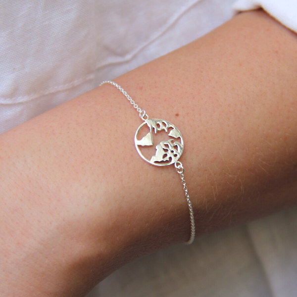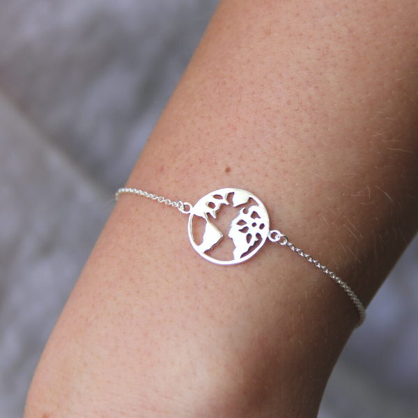 Äntligen finns nu vår populära Globe i armband med tunn kedja! Jordbloben mäter 1,5cm i diameter. Armbandet är 16 cm långt men kan förlängas till 19cm.