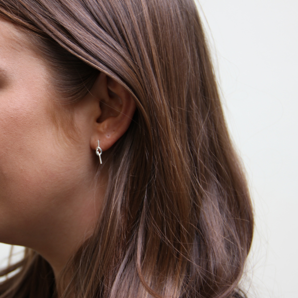 Ett par fina örhängen i form av en knut. Passar snyggt ihop med våra andra silversmycken med knutar. Ca 16mm lång.