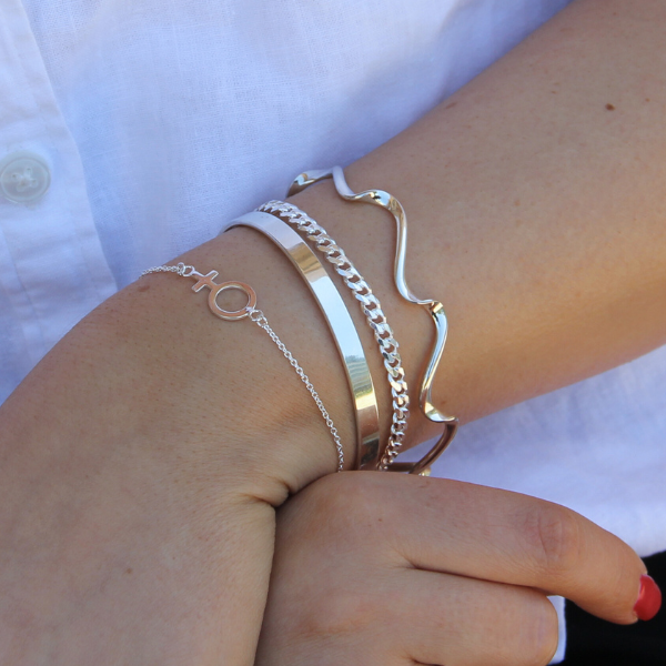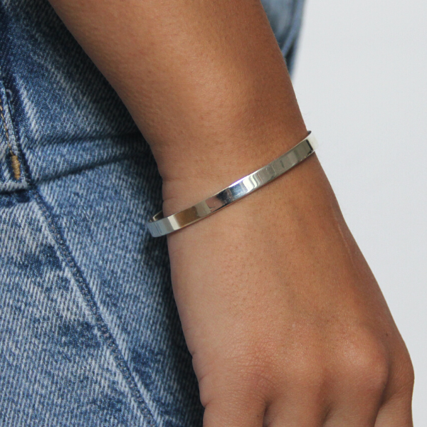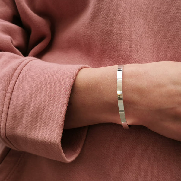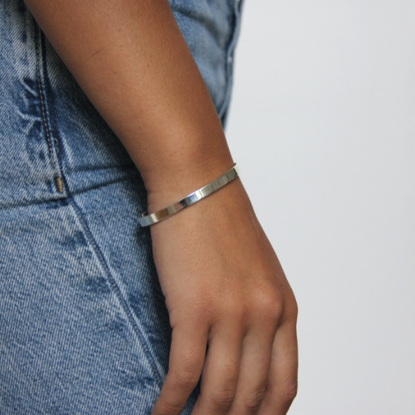 Ett stelt armband en enkel och ren design, inga krusiduller. Armbandet är 5 mm brett.