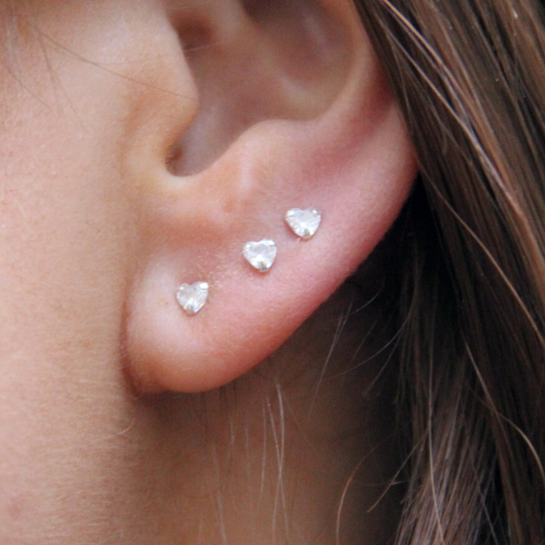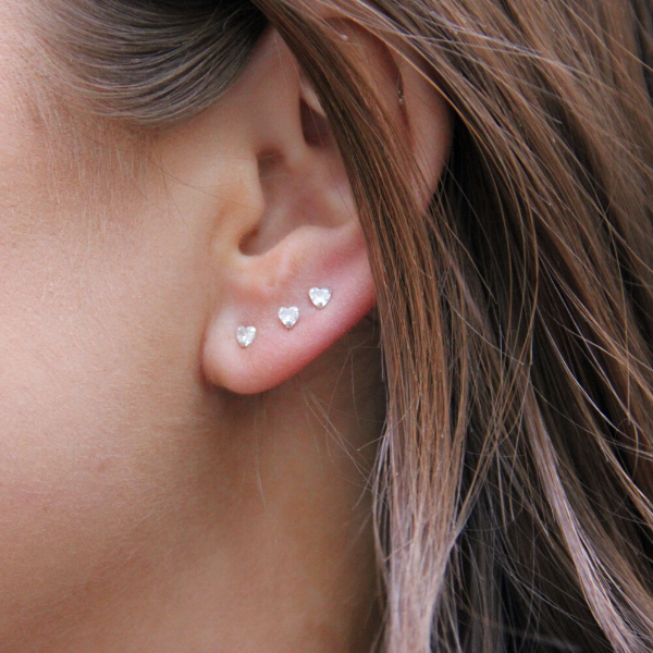 Ett par vita hjärtformade cubic zirkoner. En ny tappning på ett av våra mest sålda örhänge någonsin. Dessa små godingar är 3mm stora.
