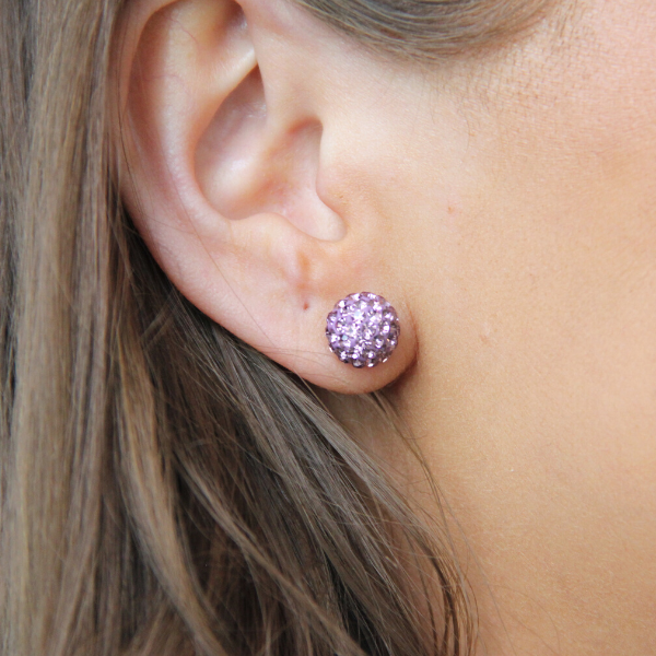 Örhängen på stift av sterling silver med en kristallboll som skimrar vackert. Finns i många storlekar och färger!