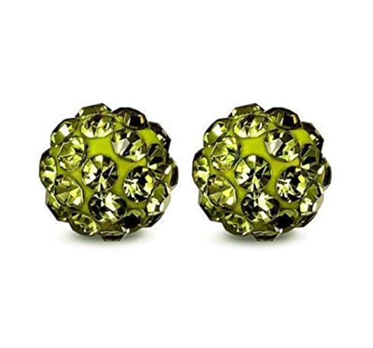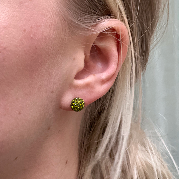Vacker kristallboll i olivgrönt som smyckar ditt öra både till vardag och fest.