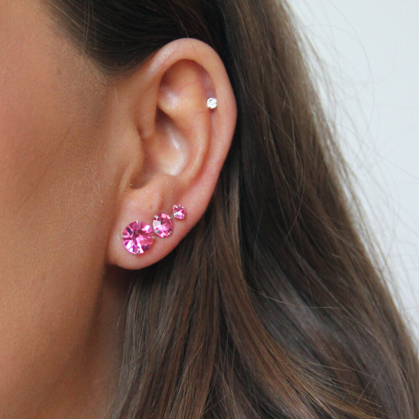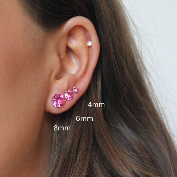 Ett par otroligt vackra örhängen med två fasettslipade Cubic Zirconia stenar. Finns i flera olika storlekar. Du väljer storlek i menyn. Snyggt att ha flera storlekar i samma öra!