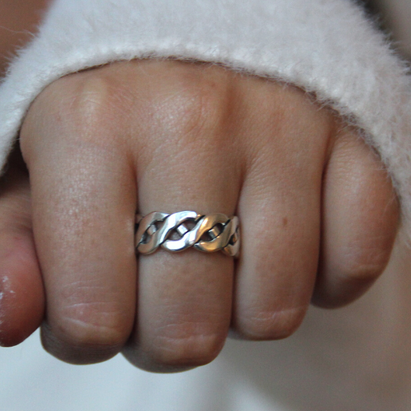 Mycket vacker ring med flätat mönster. En favorit bland oss som jobbar på STIL Silver faktiskt. "Den är så skön, och känns knappt på fingret fast att den är rejäl", är kommentarer vi fått från våra kunder,