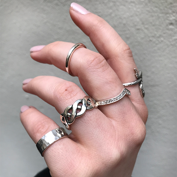 Hållbart material. Vi återvinner silver för att tillverka nya smycken.