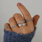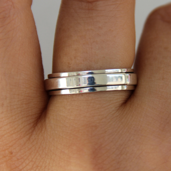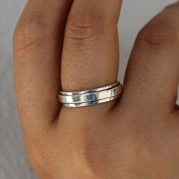 En otrolig spinner ring, som är en ring utanpå en annan ring. Den yttre ringen går att snurra på och kallas därför spinner ring. Denna ring kan fungera som anti-stress. Plain design.