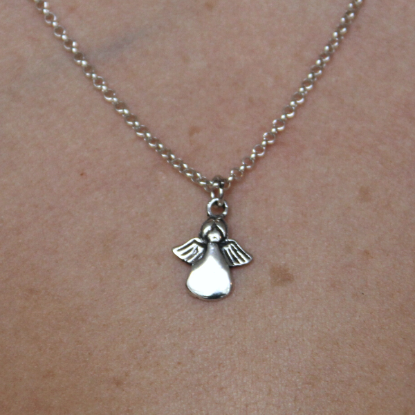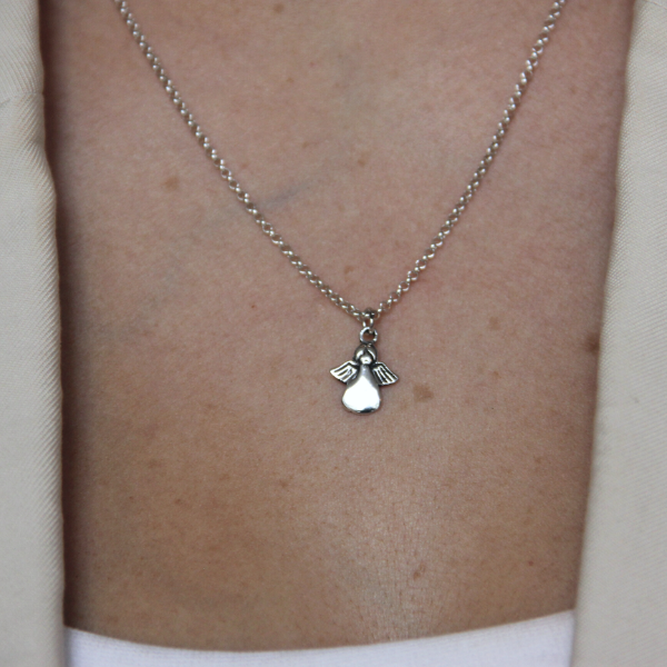 Ett halssmycke i silver med en skyddsängel som mäter 15x12mm. Perfekta gåvan att ge bort till någon du håller kär.