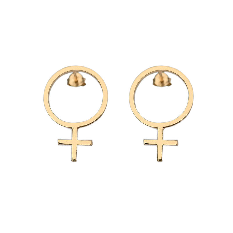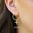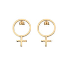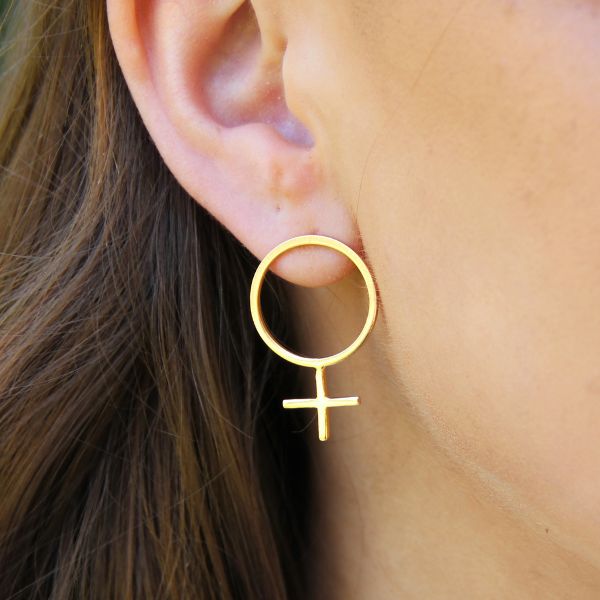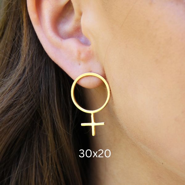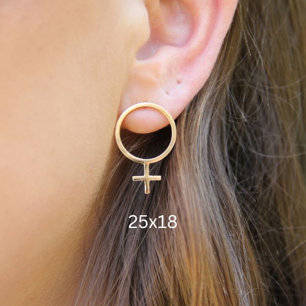 Ett örhänge med mycket attityd. Venustecknet som örhänge på stift, gjort av äkta 925 sterling silver som guldpläterats med 18 k guld. Finns i två storlekar.