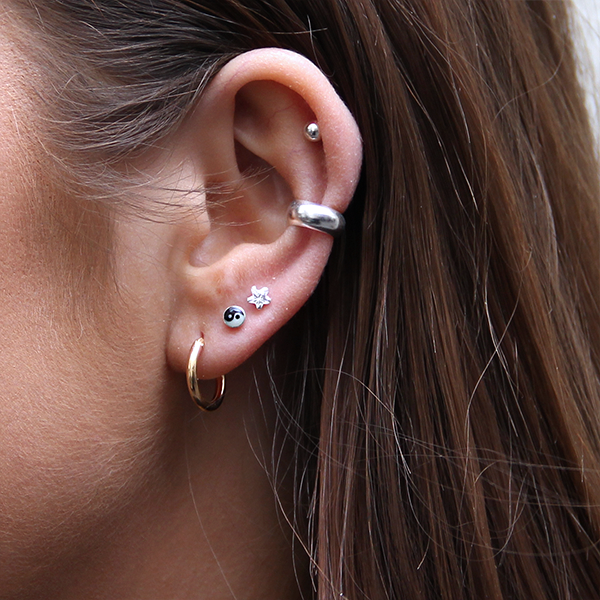 Ett miniörhänge med Yin-yang-symbolen. Ytan är emaljerad men botten och stift är såklart av sterling silver 925.