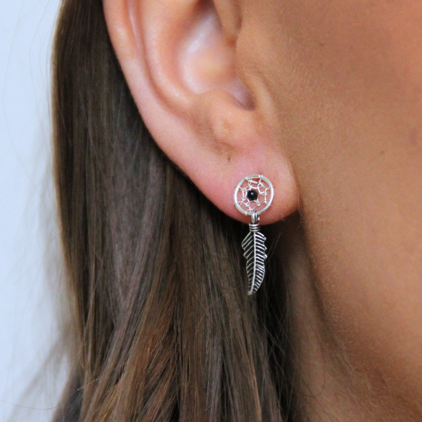 SILVERÖRHÄNGEN DRÖMFÅNGARE STUDS SVART STEN
