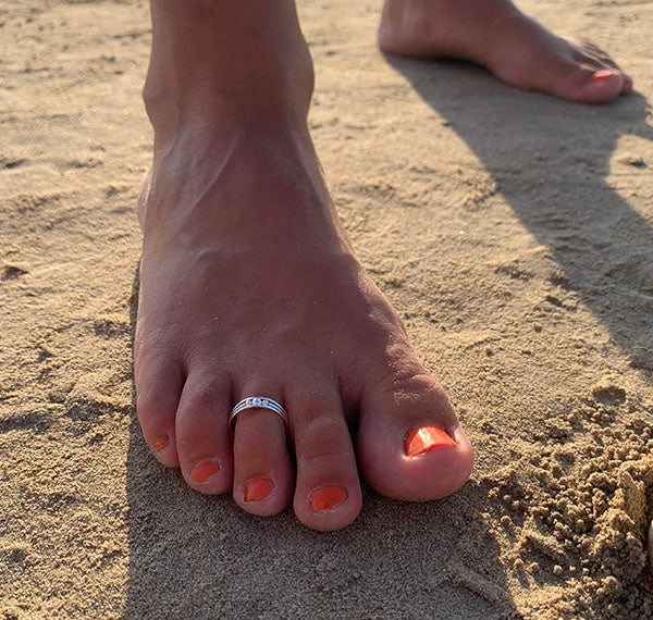 Tåringar är mindre kända än vristlänkar, men minst lika charmiga. De bärs oftast på andra eller tredje tån och kommer i allt från enkla, släta ringar till mer utsmyckade varianter med stenar eller mönster. Eftersom de ofta är justerbara, är de lätta att anpassa efter fotens form.