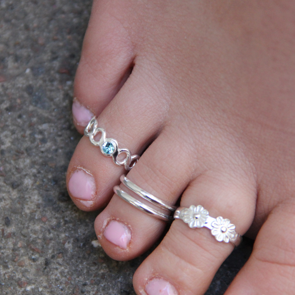 En supersnygg tåring med två blommor. Otroligt gullig att smycka sommarfötterna med!
