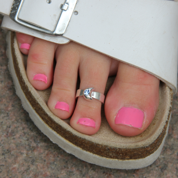 En snygg tåring med en måne och en ljusblå cubic zirkonia sten i mitten. Ringen är öppen baktill och går att justera.