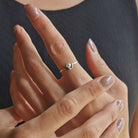 Tunn ring med en fin amors båge med en vit liten sten i mitten. Ringen som bringar kärlek och hopp.