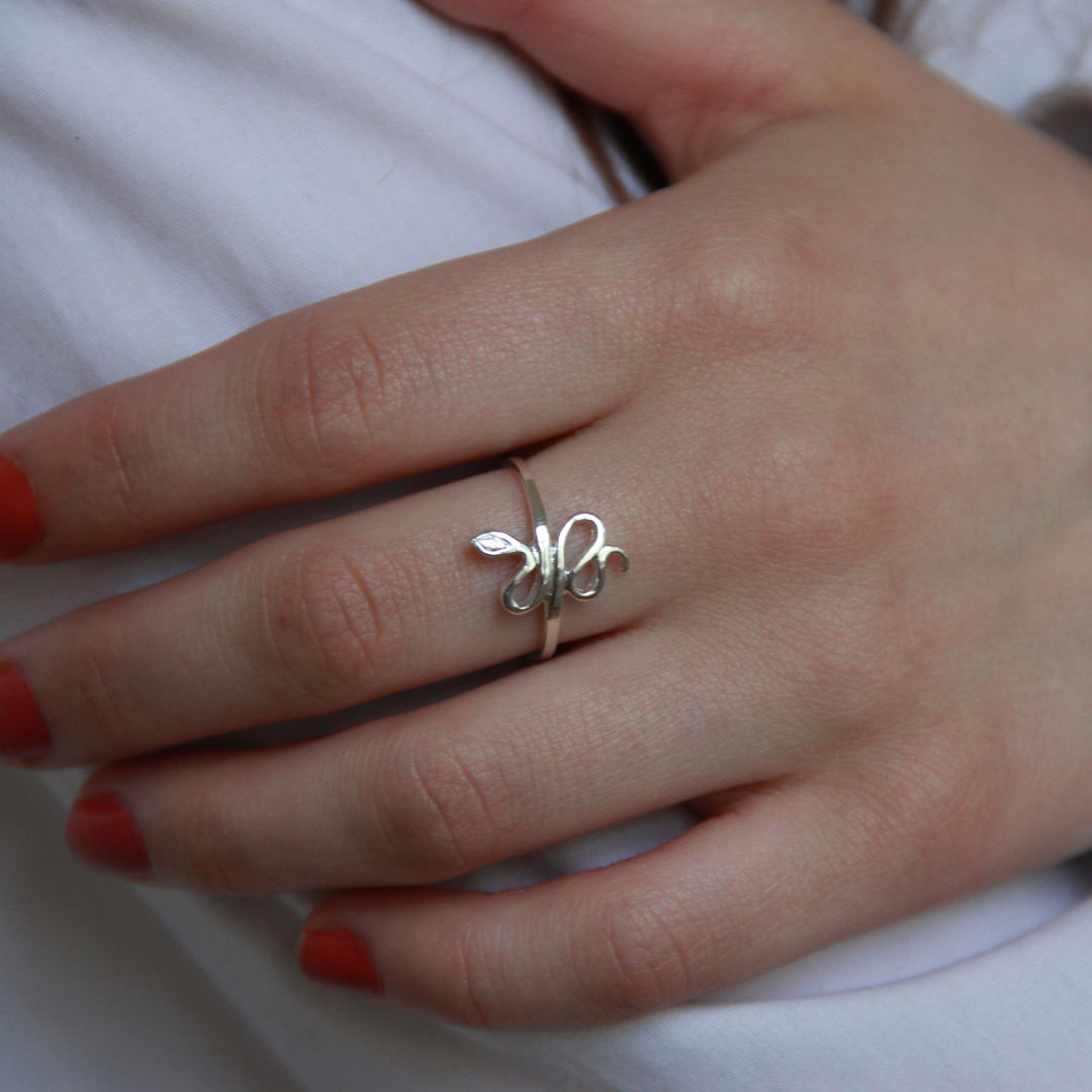 Supergullig ring i form av en liten mini-orm som snirklar sig över ditt finger. Ormens höjd är ca 15mm.