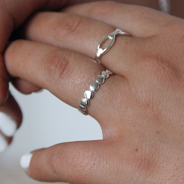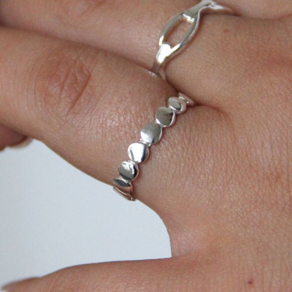 En supersöt liten ring med små fyllda cirklar som sitter ihop. Klassisk, enkel och elegant!
