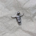 Ett halssmycke som är riktigt coolt och passar att ha både med en silverkedja eller med en läderrem. Smycket är 2,5cm brett (horn till horn) och ca 2,5cm långt.