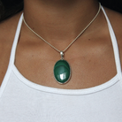 An incredible necklace with genuine Malachite. Big, green and absolutely gorgeous! Chain not included, add it to the menu for chains. The necklace measures approximately 51x25mm. MALACHITE: Malachite has been used for physical and emotional healing, and the metaphysical properties of malachite are said to have enormous benefits. It is also considered an important protective stone, protecting against radiation and clearing away electromagnetic pollution. The dimensions are approximately 43x30mm for the piece of jewelry itself excluding the hanging loop.