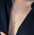 Our stylish lightning bolt as a necklace. The bolt is about 40 mm long. Note, the bolts have a ring as a pendant, see picture 2.