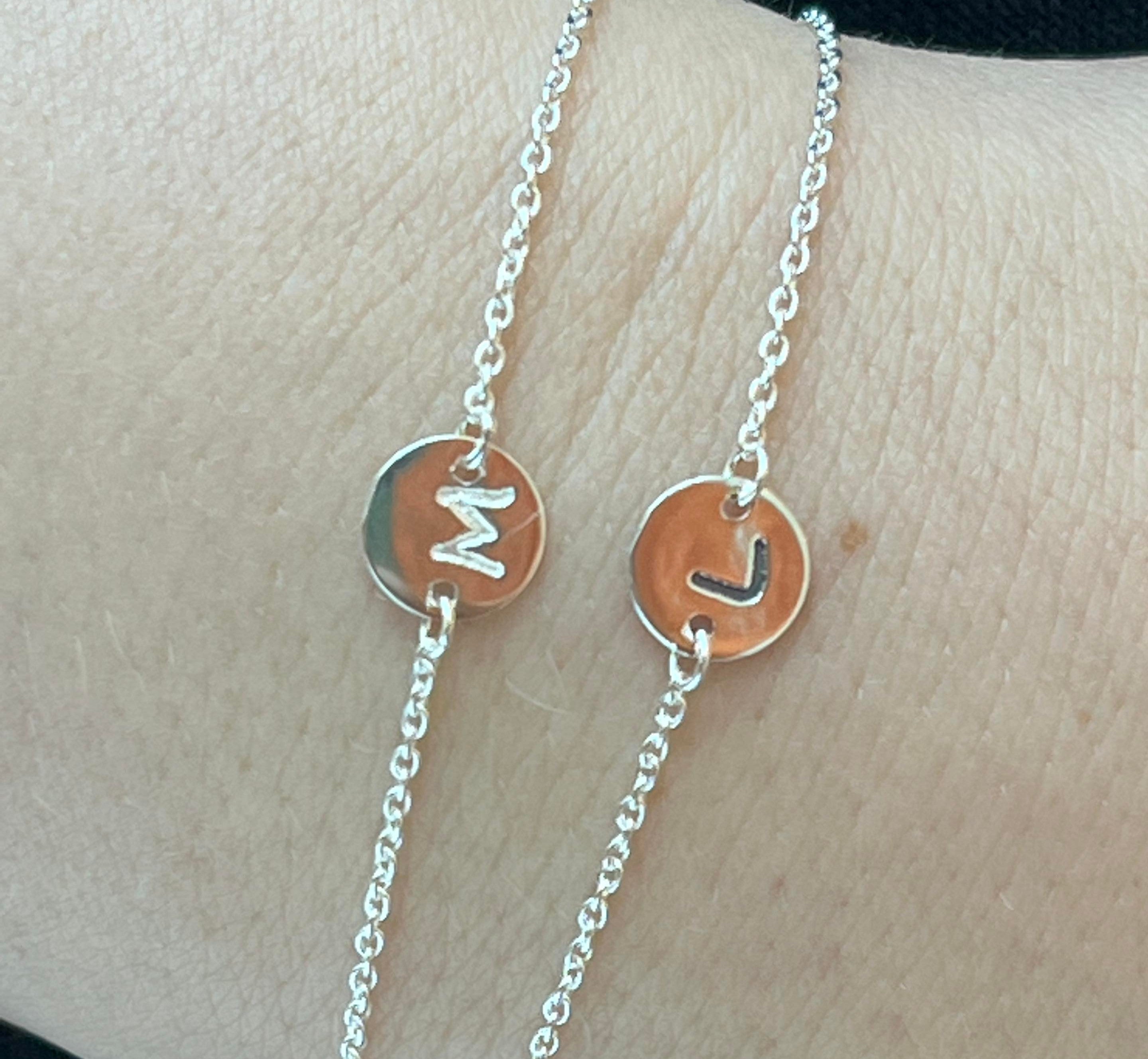 Our letter bracelets with a classic straight style are our best-selling bracelets. Now there is also a variant where the letter is written in a cursive text style and a little more "squiggly".