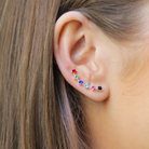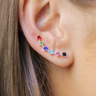 SINGLE EAR CLIMBER IN SILVER MULTI COLOR