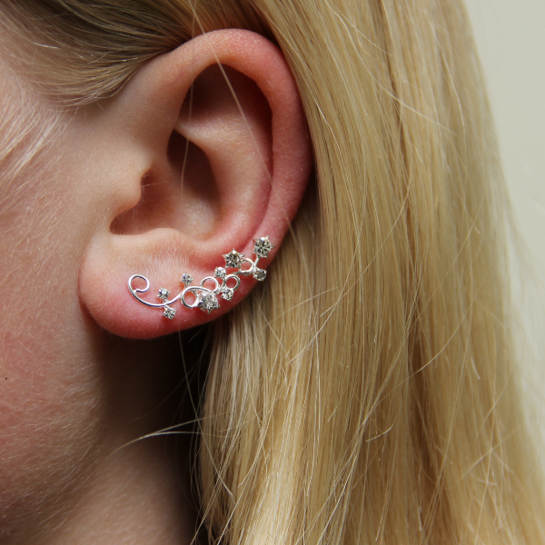 Stylish climbers with white zirconia stones that "swirl" up your ear!