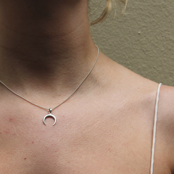 A beautiful necklace with a crescent moon. The necklace measures 15x15mm.