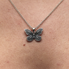 An incredibly cute oxidized butterfly! The butterfly measures 22x16mm. Note, Chain is not included, you choose your own chain in the menu.