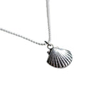 Beautiful necklace in the shape of a seashell. The shell is about 13 mm long, 15 mm wide and about 4 mm thick. The front and back of the shell look the same.