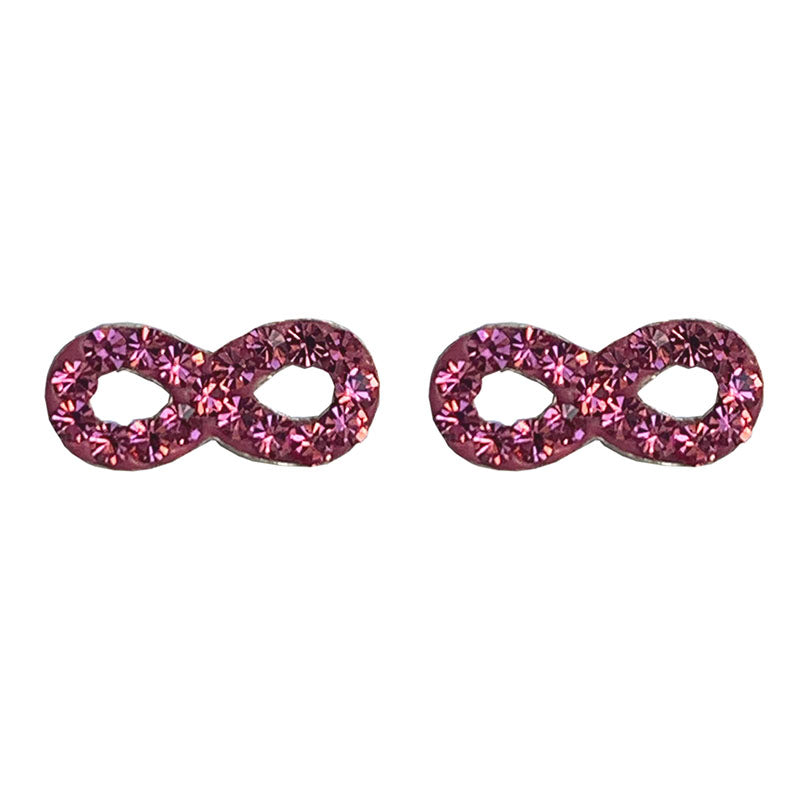 SILVER EARRINGS INFINITY RHINESTONES PINK