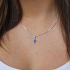 NECKLACE/PENDANT IN SILVER CROSS WITH DARK BLUE STONES SMALL