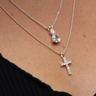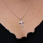 A stylish necklace in silver with white cubic zirconia stones. This silver cross measures 23x15 mm.