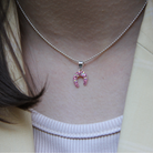 NECKLACE/PENDANT IN SILVER PINK RHINESTONES HORSESHOE "LIGHT ROSE"