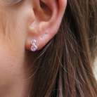 A pair of stunning earrings with two pink stones. The stones are cubic zirconia. These earrings measure approximately 10x5mm