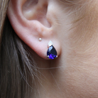 A pair of incredible earrings in the shape of a blue drop and smaller white stones. The stones are cubic zirconias. These measure 17x12mm. This collection matches our necklace Royal Drop.