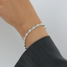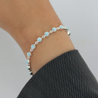 An incredible silver bracelet with genuine larimar. The bracelet is 19cm long but can be extended to 22cm. The bracelet consists of 18 4mm stones. Absolutely stunningly beautiful! LARIM: Larimar gives us both freedom and togetherness in relationships. It supports us to be happy together and to be able to talk and communicate with each other. Use Larimar when you want to communicate from the heart, from your truth for everyone's happiness and joy.