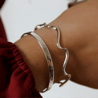 A beautiful bracelet shaped like several waves. Open at the back to be worn on the arm.