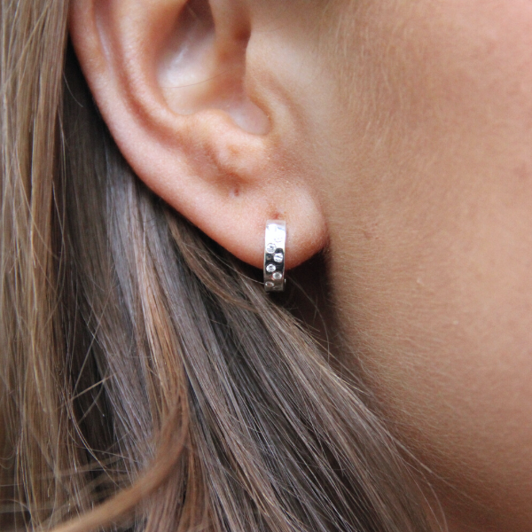 SILVER EARRINGS CREOLE SPARKLY DOTS